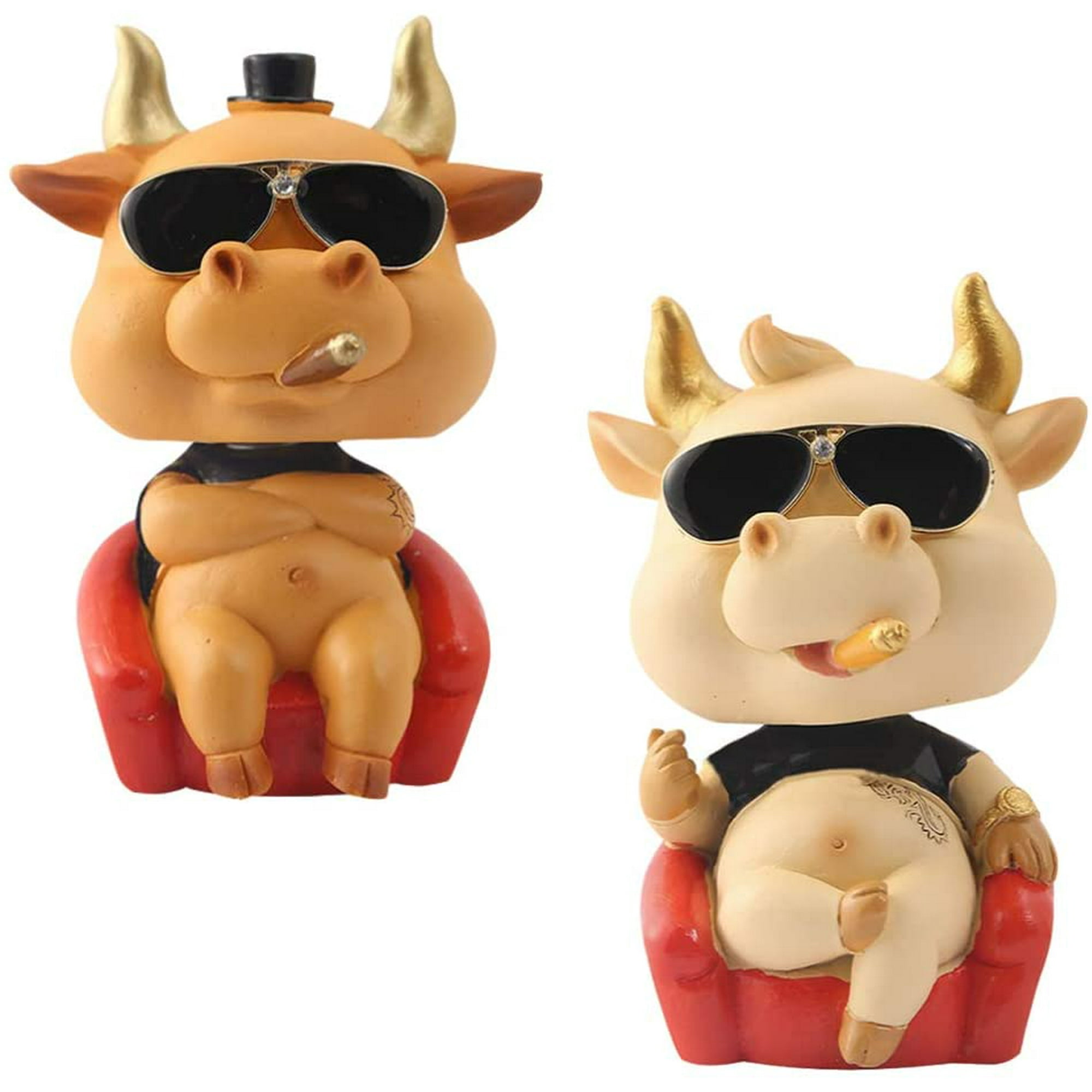 Lonbiaci 2pcs Mini Cow Cattle Statue Car Dashboard Shaking Head Toys Bobblehead Table Ornaments Chinese Zodiac Ox Feng Shui Decoration Cake Toppers Figurine Walmart Canada